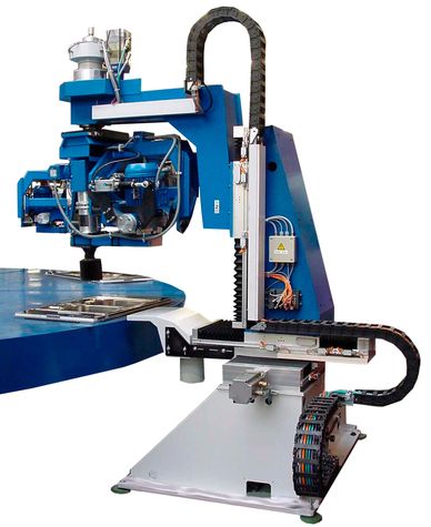 PLC surface polishing and buffing machine. Applications: Polishing and grinding automotive trim parts.